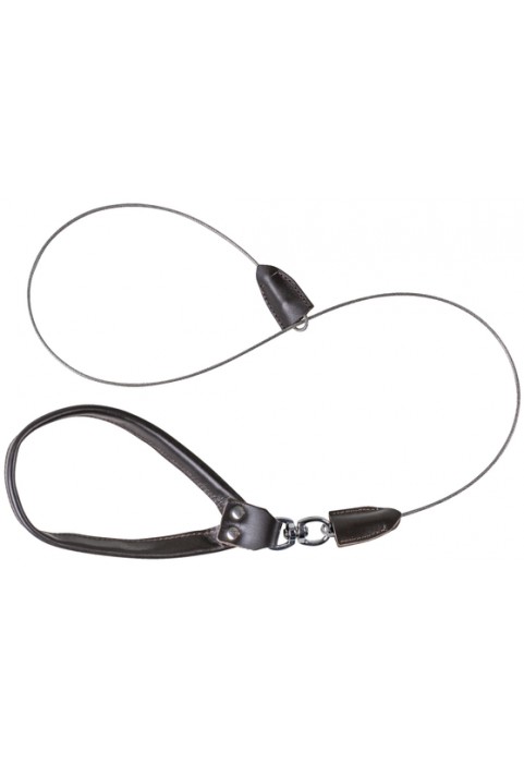 Câble tire-gibier monopièce, à vertèbres pivotantes, poignée gainée cuir et cordon en acier.