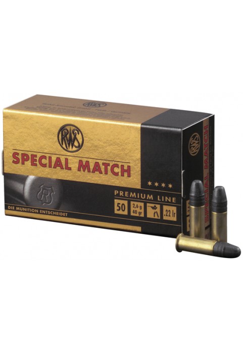 CART. RWS PREMIUM LINE SPECIAL MATCH CAL. .22 LR BR TÊTE PLOMB RONDE 40GR 2,59G BTE 50